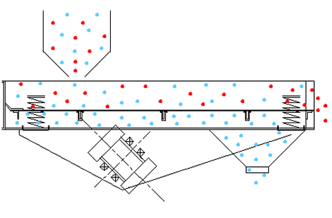 利用振动电机激振作为振动源,使物料在筛面上呈跳跃式直线向前运动,物料从给料机均匀地进入筛分机的进料口,通过多层筛网产生数种规格的筛上物、筛下物、分别从各自的出口排出。
