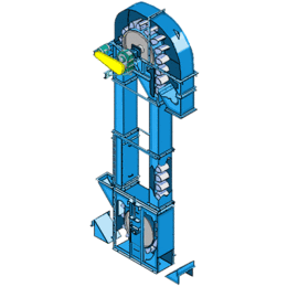 GD型钢丝绳芯胶带斗式提升机牵引构件采用高强度钢丝绳芯橡胶带,克服了链条啮合驱动产生动载荷,较链条更轻便,工作平稳,能以更快的运动速度达到更高的生产率,在同样的生产条件下,胶带因其工作速度高和自重较轻,可使物料线荷载和牵引构件的线载荷减少,从而减少整机的尺寸和自重。