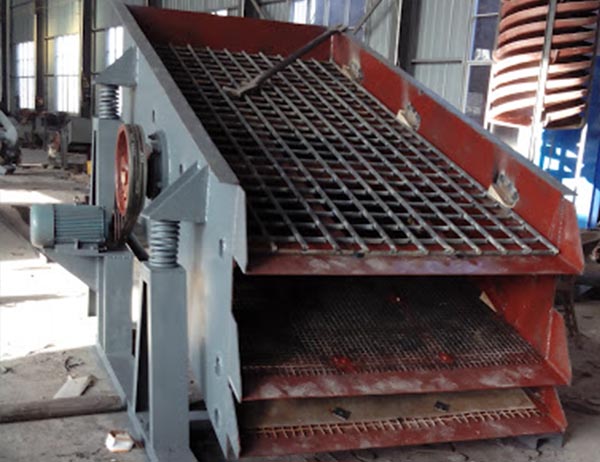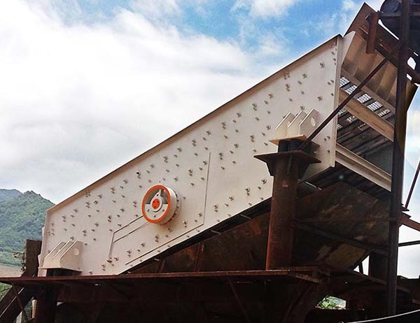 5、给料溜槽应尽可能靠近给料端,并尽可能沿筛子全宽均匀给料,其方向与筛面上物料运行方向一致,从而得到最佳的筛分效果。给料点到筛面的最大落差不大于500mm,确保物料对筛面的最小冲击;
